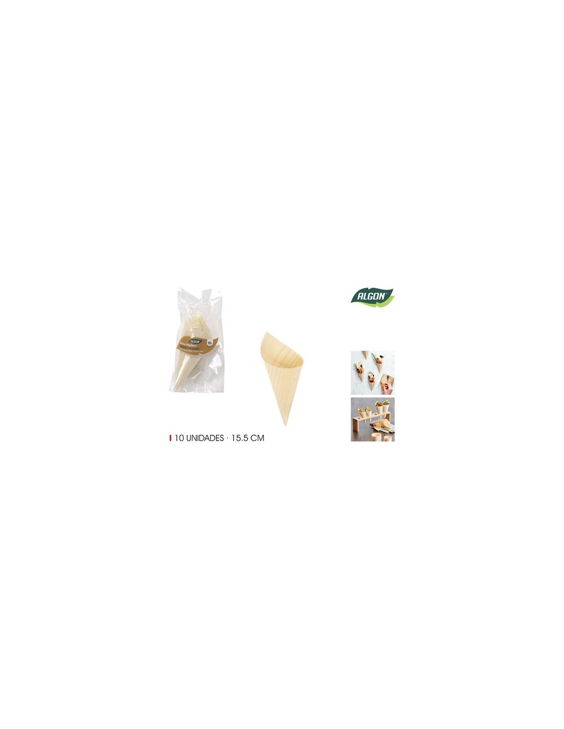PACK 10 CONOS MADERA APERITIVOS 15.5CM ALGON