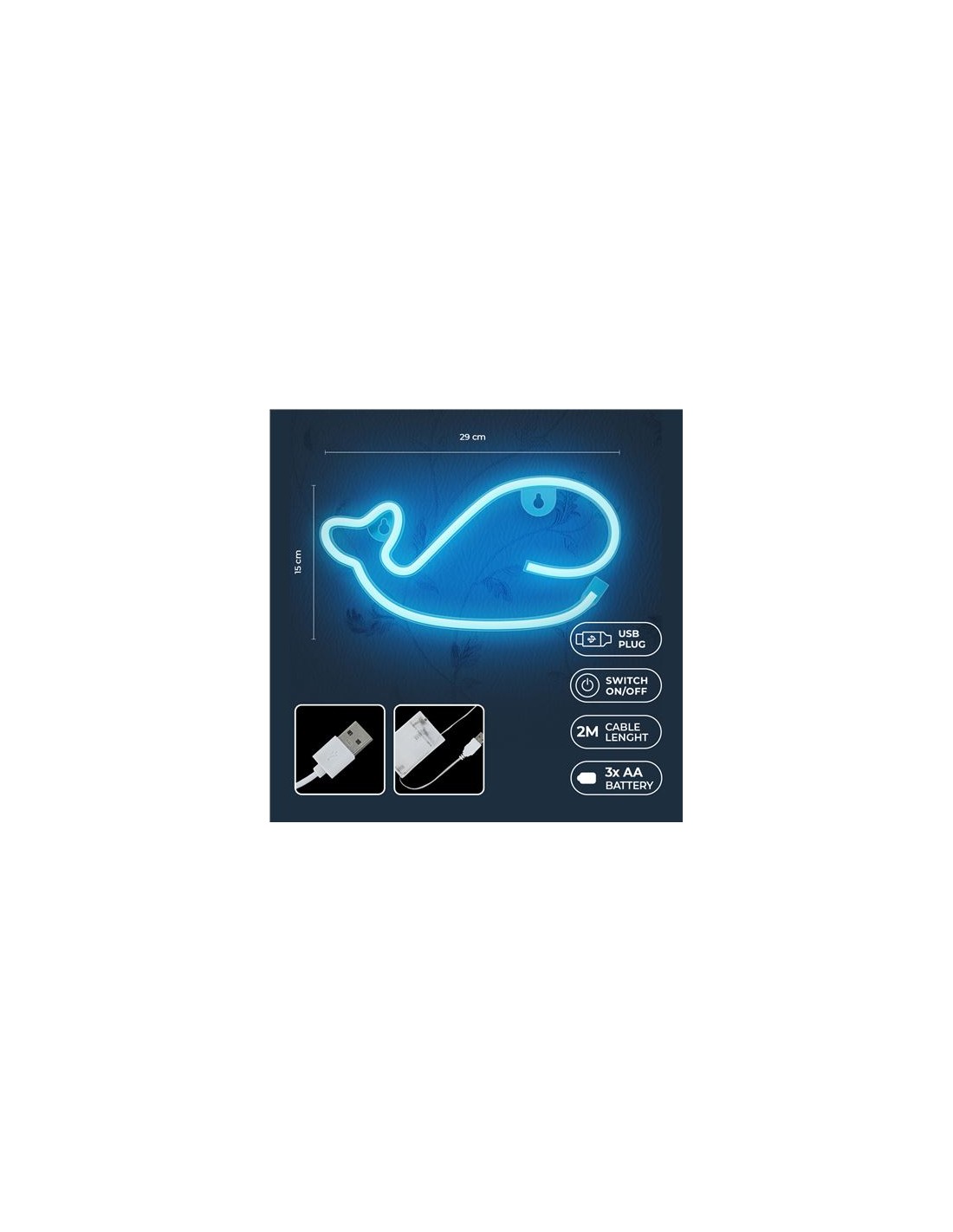 LAMPARA DECORATIVA NEON LED WHALE BLUE FOREVER