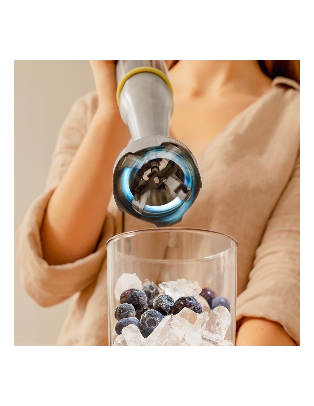 Katana 15 TotalDestroy Jar B Batidora de mano con 1500 W. Innovadora tecnologÃa TotalDestroy con 4 cuchillas recubiertas de titanio negro que giran en sentido contrario y trituran ingredientes más duros en menos tiempo. Con PerreoMove, sistema que mueve las cuchillas arriba y abajo para batir más con menos esfuerzo. Pie XL extra largo, campana antisalpicaduras y selector de velocidad progresivo con función Turbo.
