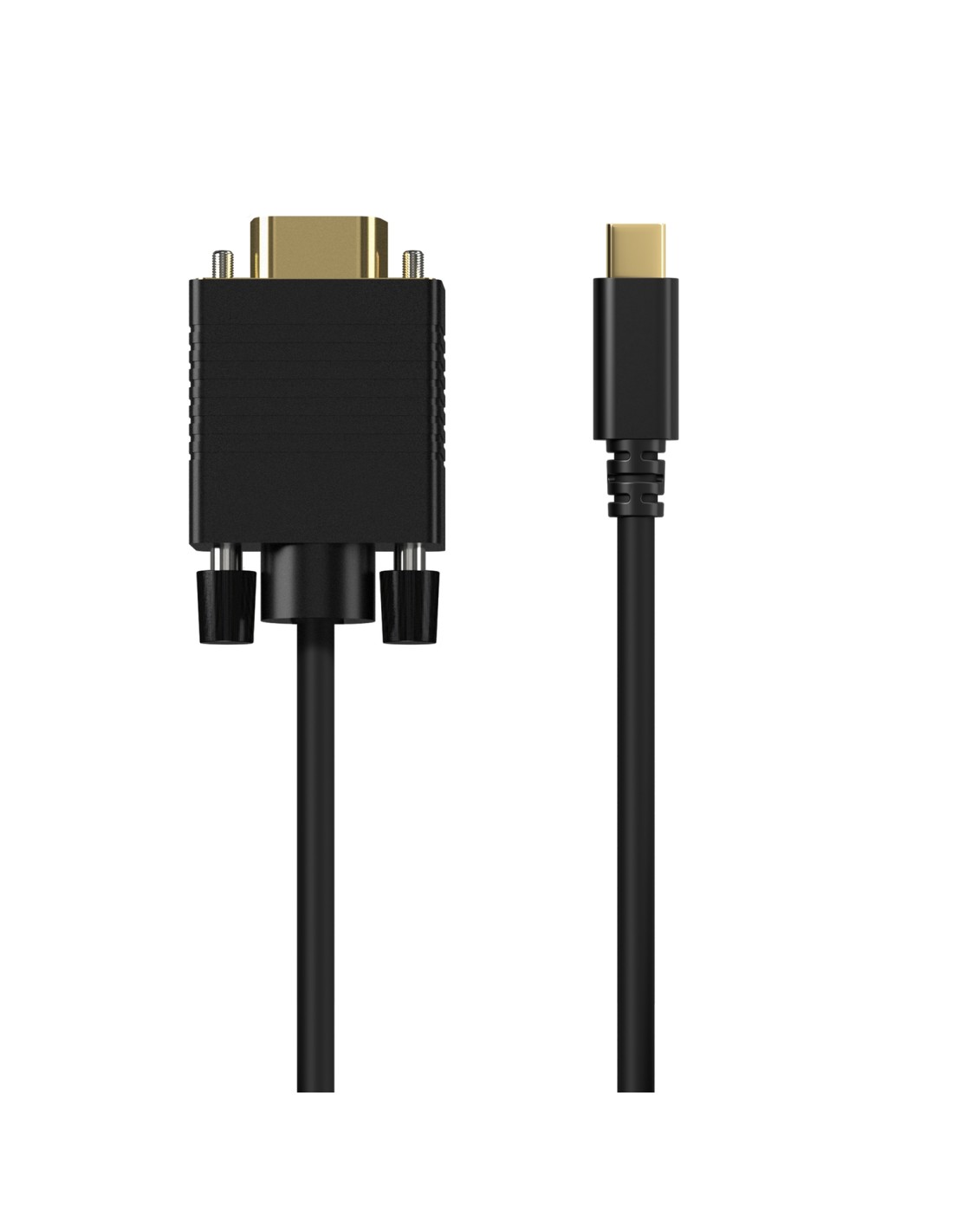 - Cable conversor USB-C a VGA, con conector USB-C en un extremo y VGA macho en el otro