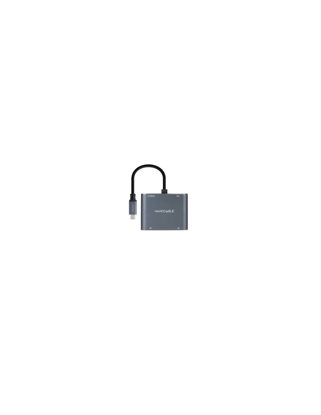 Nanocable Conversor USB-C a 2xHDMI/USB2.0/PD, 15 cm, Gris