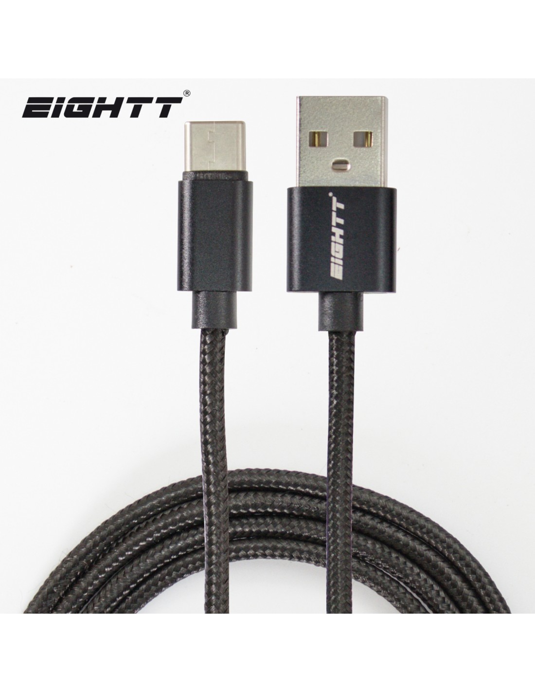 Eightt Cable USB a Type C 1Mts trenzado de Nylon Negro. Carcasa de aluminio