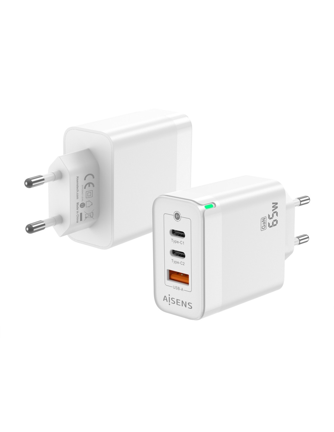AISENS Cargador Gan 65W, 2xUSB-C PD3.0 QC4.0, 1xUSB-A QC3.0, Blanco