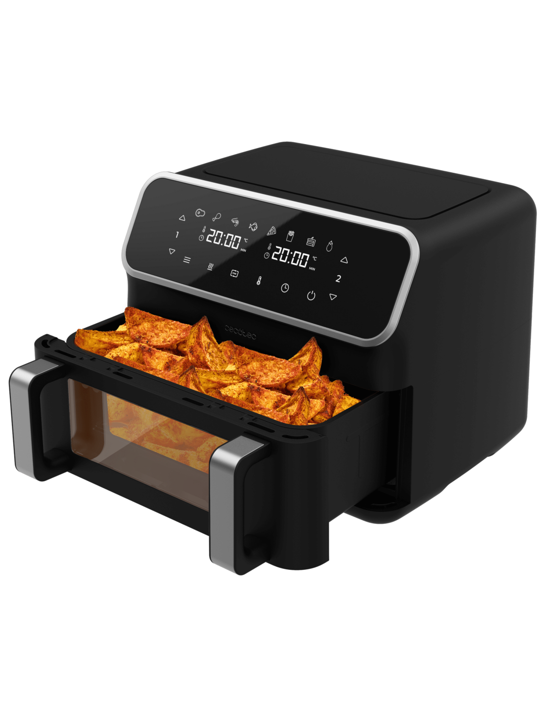 Cecofry Panoramic 9000 Freidora de aire digital con ventana, 9 L de capacidad, pared divisoria móvil para optar entre dos cestillos con temperatura dual o convertirse en una sola cubeta.