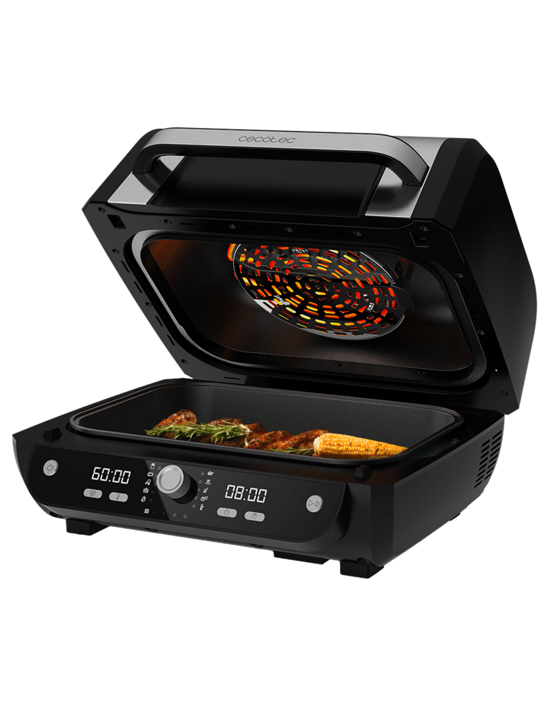 Cecofry FireDome 8000 Pro Freidora de aire grill de 1700W, doble resistencia, 12 modos de cocción y 4 niveles de grill.