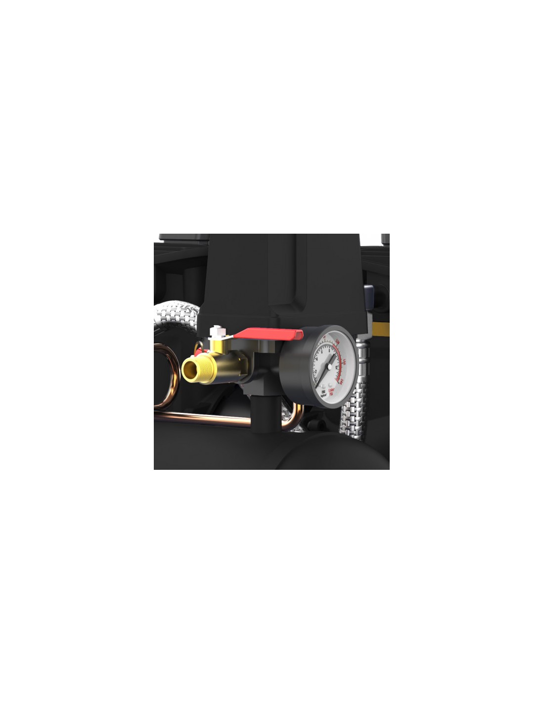 • Este compresor de aire combina portabilidad y rendimiento para ofrecer una solución eficiente en trabajos domésticos, de bricolaje y tareas de mantenimiento ligero. Con una potencia de 900W y una presión máxima de 8 bares, este modelo proporciona un flujo de aire constante de hasta 100 L/min, ideal para tareas como inflado de neumáticos, limpieza con aire a presión o el uso de herramientas neumáticas básicas.