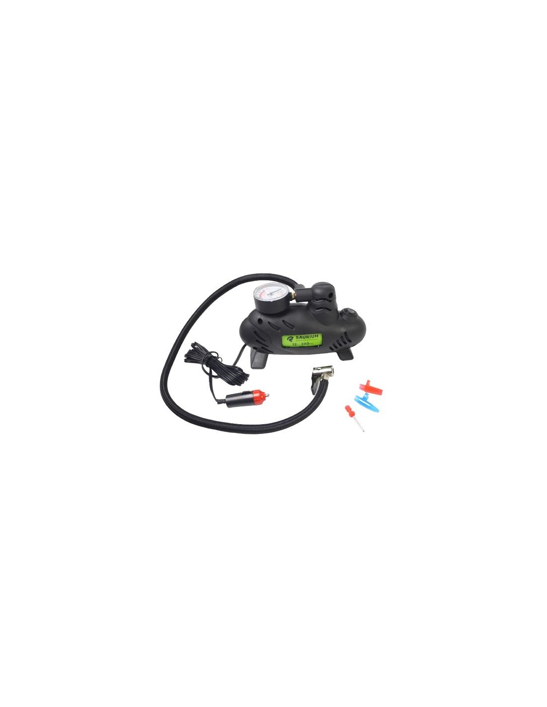 • Mini compresor de aire para vehÃculos. Dispone de dos boquillas de inflado con adaptador para válvula de aguja y además, incluye manómetro. Incorpora un conector 12 V/CC para encendedor de coche. Ideal para inflar neumáticos, bicicletas y colchonetas.