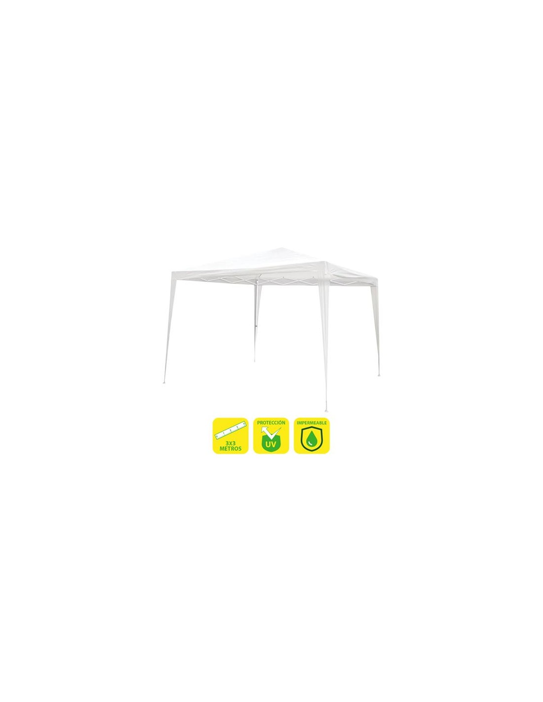 • Con medidas de 3 metros de longitud por 3 metros de anchura y una altura de techo de 2,45m, proporciona un ambiente perfecto disfrutar de reuniones al aire libre con espacio suficiente para 8 personas alrededor de una mesa
