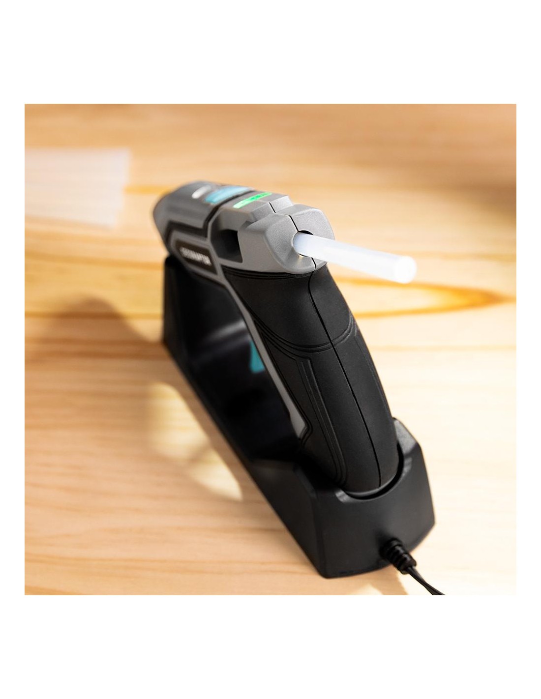 CecoRaptor Perfect Fix CecoRaptor Perfect Fix Pistola de encolar a baterÃa de 3,7 V y 1500 mAh, compatible con barras de pegamento de 7 mm de diámetro y 140 mm de longitud; tiempo de calentamiento de 90 s, apagado automático tras 10 min de inactividad y autonomÃa de hasta 30 min.