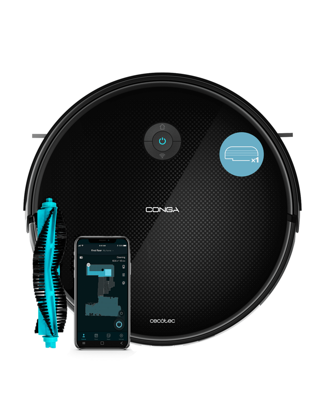 Conga 2499 Ultra Genesis Robot aspirador con tecnologÃa giroscópica. Friega, aspira y barre a la vez. Potencia de succión de 2200 Pa. APP CECOTEC. Cepillo multifunción. Depósito mixto. 2 cepillos laterales. 3 litros de capacidad. Conectividad WiFi 2,4 GhZ y Bluetooth. Mopa de fregado