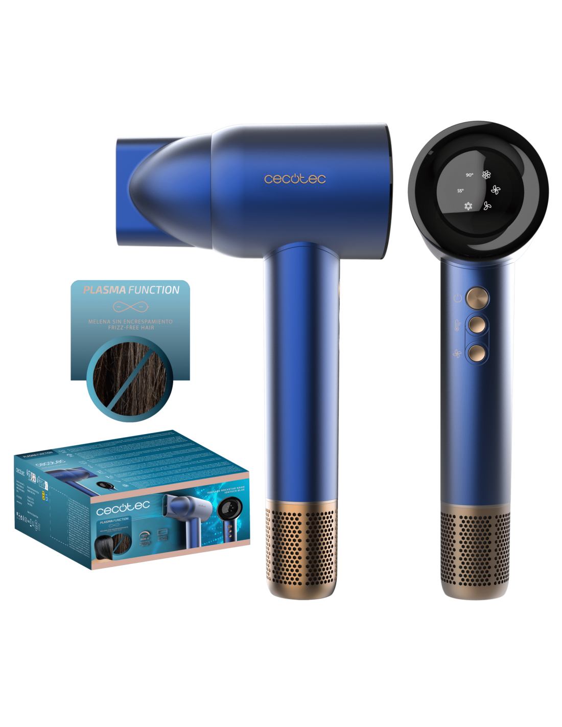 IoniCare RockStar Nano IonTech Blue Secador de pelo con Plasma, 110000 rpm, pantalla, control inteligente del calor, 3 temperaturas, 3 velocidades y función memoria