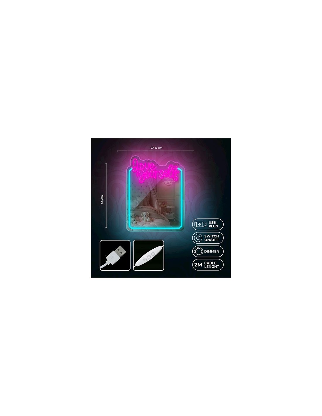 ESPEJO DECORATIVO CON NEON LED LOVE YOURSELF FOREVER