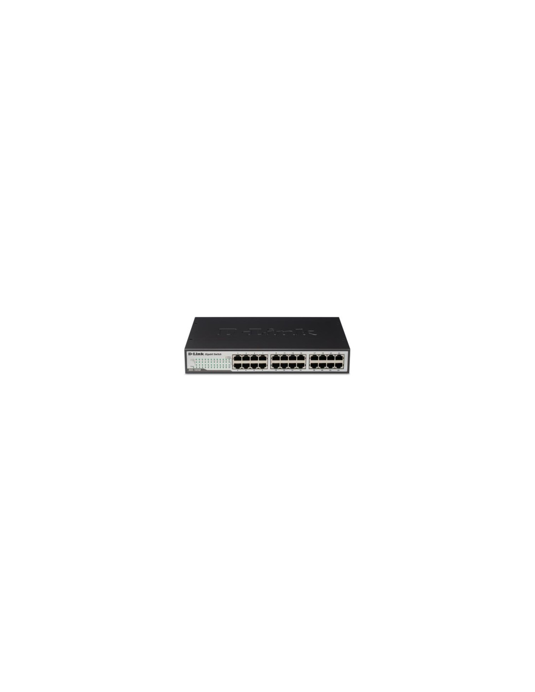 D-Link 24-Port 10/100/1000 Rackmountable Switch. Tipo de interruptor: No administrado. Tabla de direcciones MAC: 8000 entradas, Capacidad de conmutación: 48 Gbit/s, Tasa de transferencia (máx): 1 Gbit/s. Memoria intermedia de paquetes: 0,5 MB. Consumo energético: 26,7W. Peso: 1,8 kg