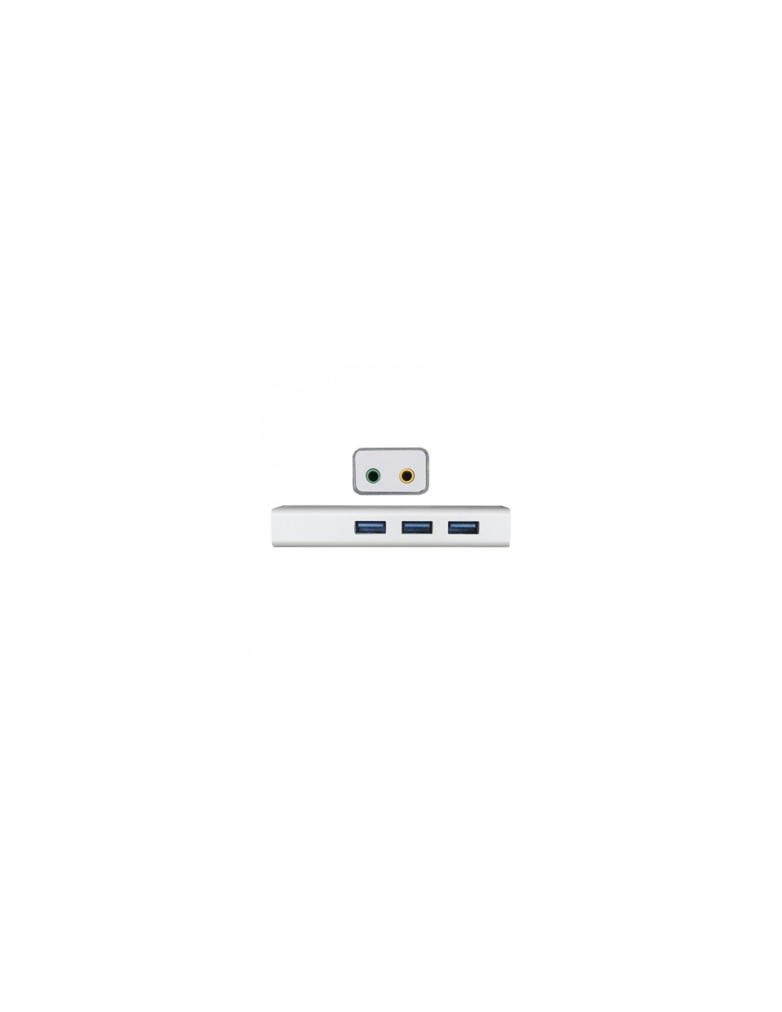 Este USB hub consta de 3 puertos USB 3.0 hasta 5Gbps, un adaptador de sonido USB 5.1, conectores