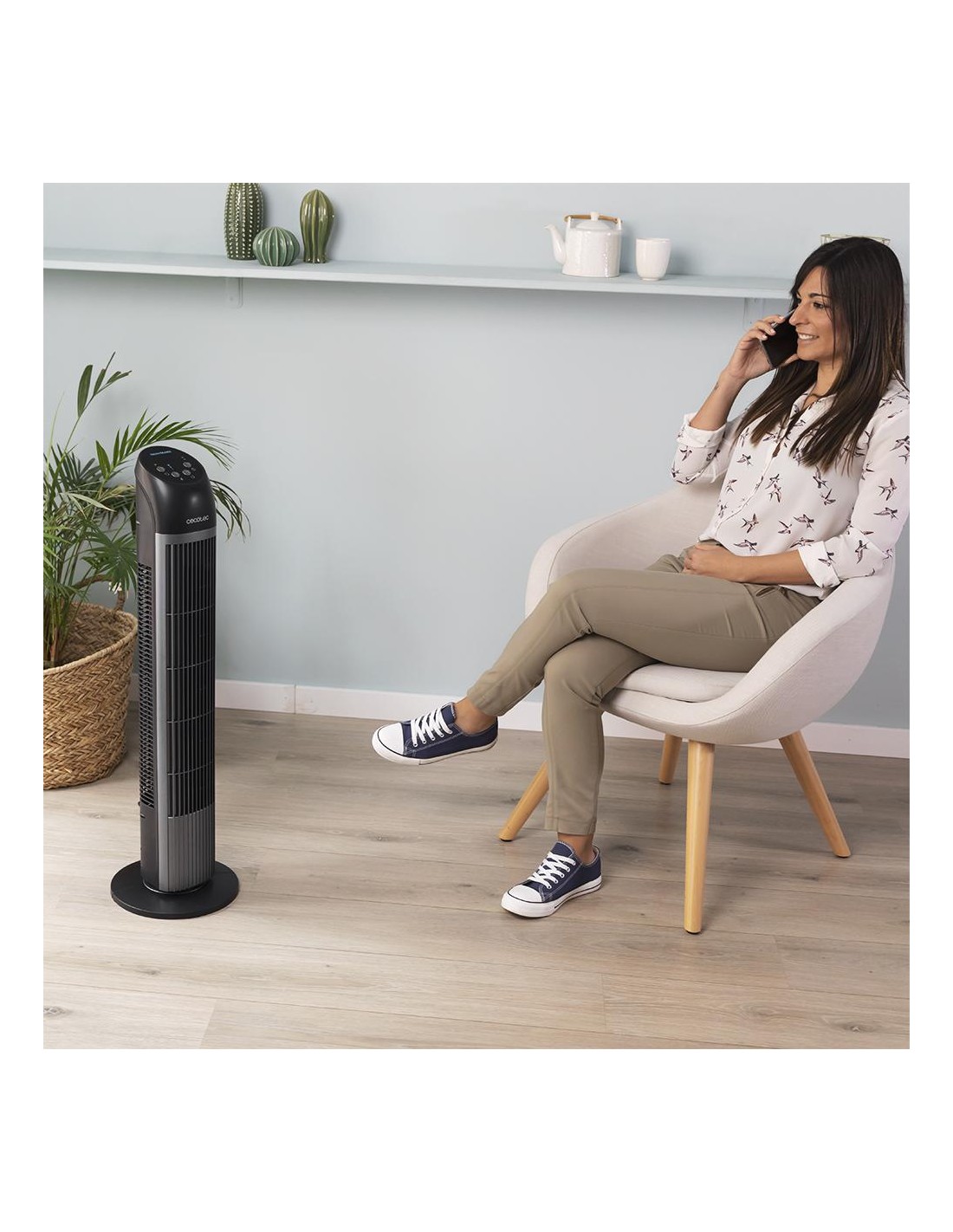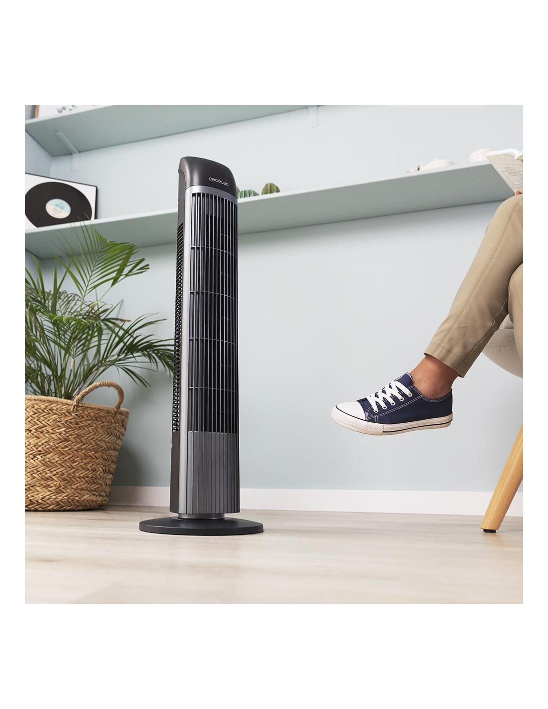 EnergySilence 7050 SkyLine Control. Ventilador de Torre con Mando a Distancia y Temporizador, 45 W, Altura 33, Motor de cobre, 3 Velocidades, Oscilación, Indicador LED