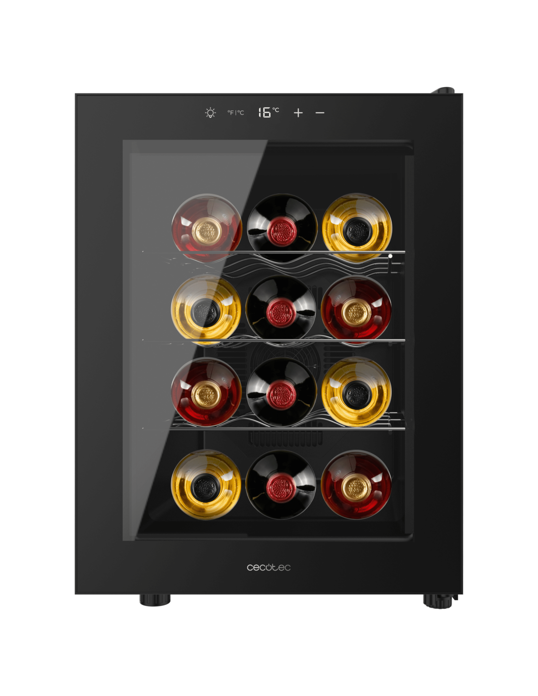 Bolero GrandSommelier 1255 CoolCrystal Vinoteca Termoeléctrica, Capacidad 12 Botellas, Silenciosa 35dB, Temperatura 8 a 18ºC, Humedad 50%-80%, Estantes Metálicos, Control Táctil, Clase E, Luz LED, Negra